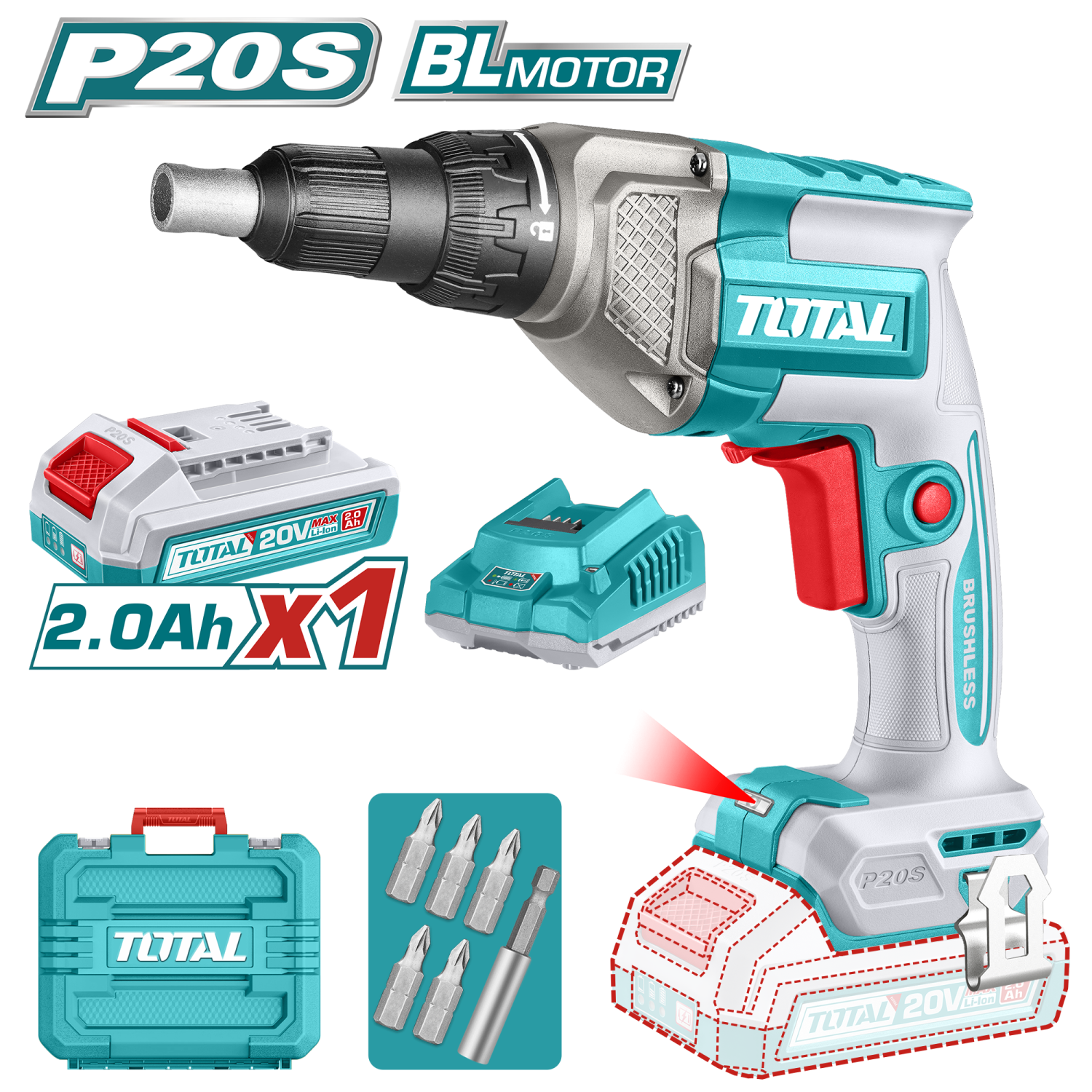 ATORNILLADOR DRYWALL INALAMBRICO BL 20V TOTAL CON CARG + BAT