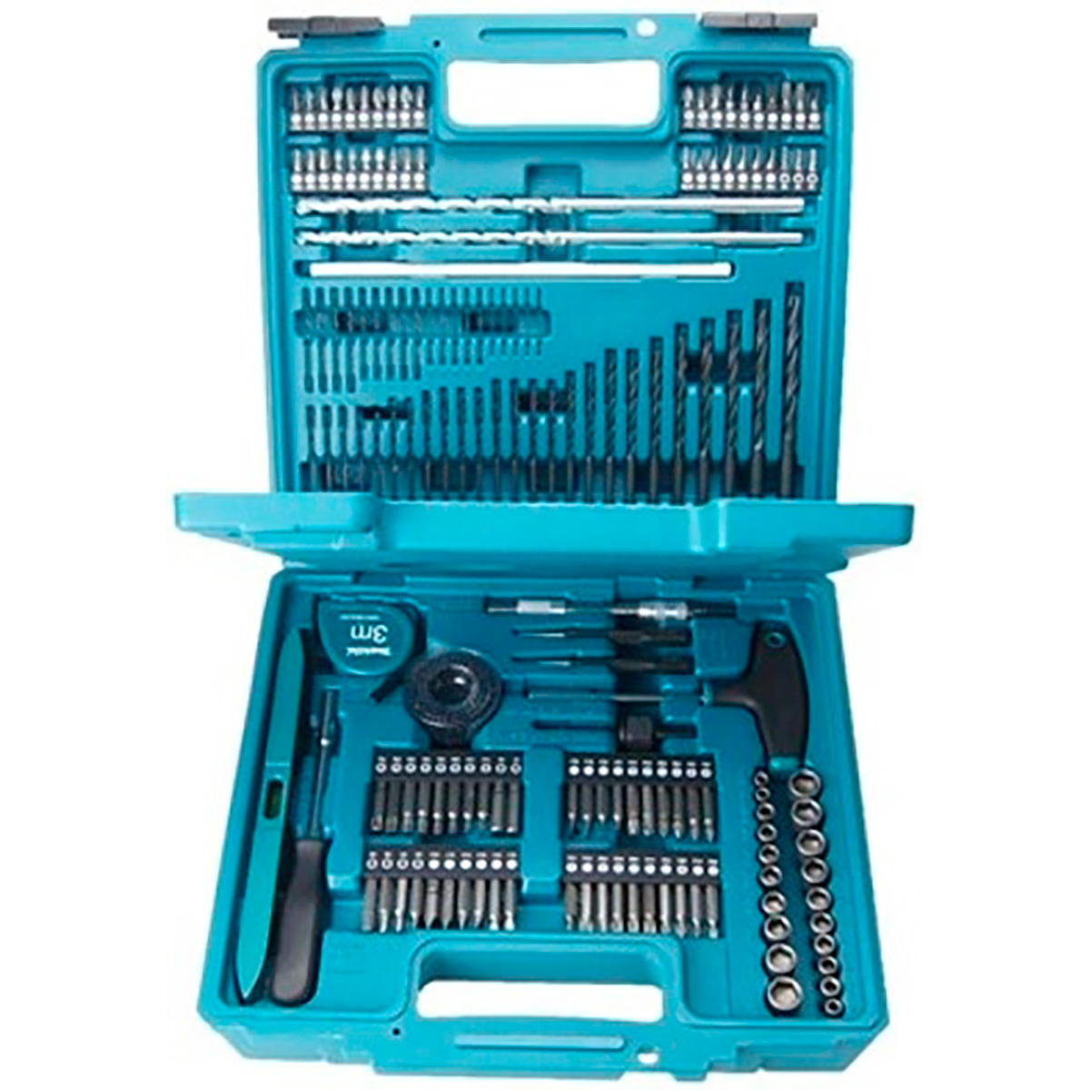 Set de accesorios que cuenta con 212 piezas que incluye brocas para madera, metal y hormigón.