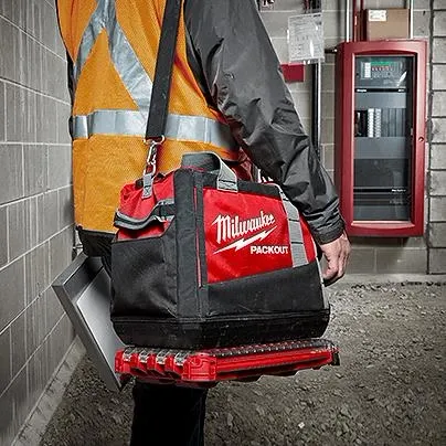 Nuestro sistema de almacenamiento modular PACKOUT™ es el sistema de almacenamiento más duradero y versátil de la industria. La bolsa de herramientas PACKOUT de 15" cuenta con una base moldeada resistente a los impactos que se conecta con todos los demás componentes del sistema PACKOUT™ a través de abrazaderas de bloqueo integradas. Construimos la bolsa de lona duradera para herramientas con material balístico 1680D y herrajes completamente metálicos para que pueda soportar entornos de trabajo hostiles La bolsa de herramientas de 15" cuenta con almacenamiento abierto y dos bolsillos exteriores para sus herramientas y accesorios que permiten un fácil acceso y visibilidad. También agregamos una correa acolchada para el hombro, asas superiores y asas laterales que le permiten transportar fácil y cómodamente su bolsa de herramientas donde la necesite. Nuestro almacenamiento modular PACKOUT™ le permite personalizar y construir su propio sistema de almacenamiento para transportar y organizar fácilmente sus herramientas y accesorios.