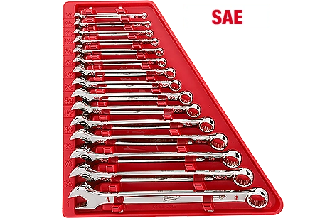 Milwaukee ha diseñado nuestras llaves combinadas desde cero, brindando el máximo torque y la máxima comodidad para el usuario. El agarre de extremo abierto MAX BITE™ mejora el agarre de la llave en tuercas y pernos, y la geometría reduce el redondeo y el desgaste. MAX BITE™ ofrece un 25 % más de torsión que los diseños de llaves de la competencia. El diseño cómodo del mango con viga en I permite una comodidad superior para el usuario, incluso cuando se aplica un par elevado. Las llaves Milwaukee cuentan con etiquetas de tamaño llenas de tinta para una fácil identificación del tamaño y una rápida distinción entre SAE y conjuntos métricos. Los kits de 15 piezas vienen en una bandeja de almacenamiento diseñada para almacenamiento a largo plazo, lo que mantiene organizado su baúl de herramientas. Respaldando nuestros productos, Milwaukee ofrece una garantía de por vida en todos nuestros juegos de llaves combinadas.