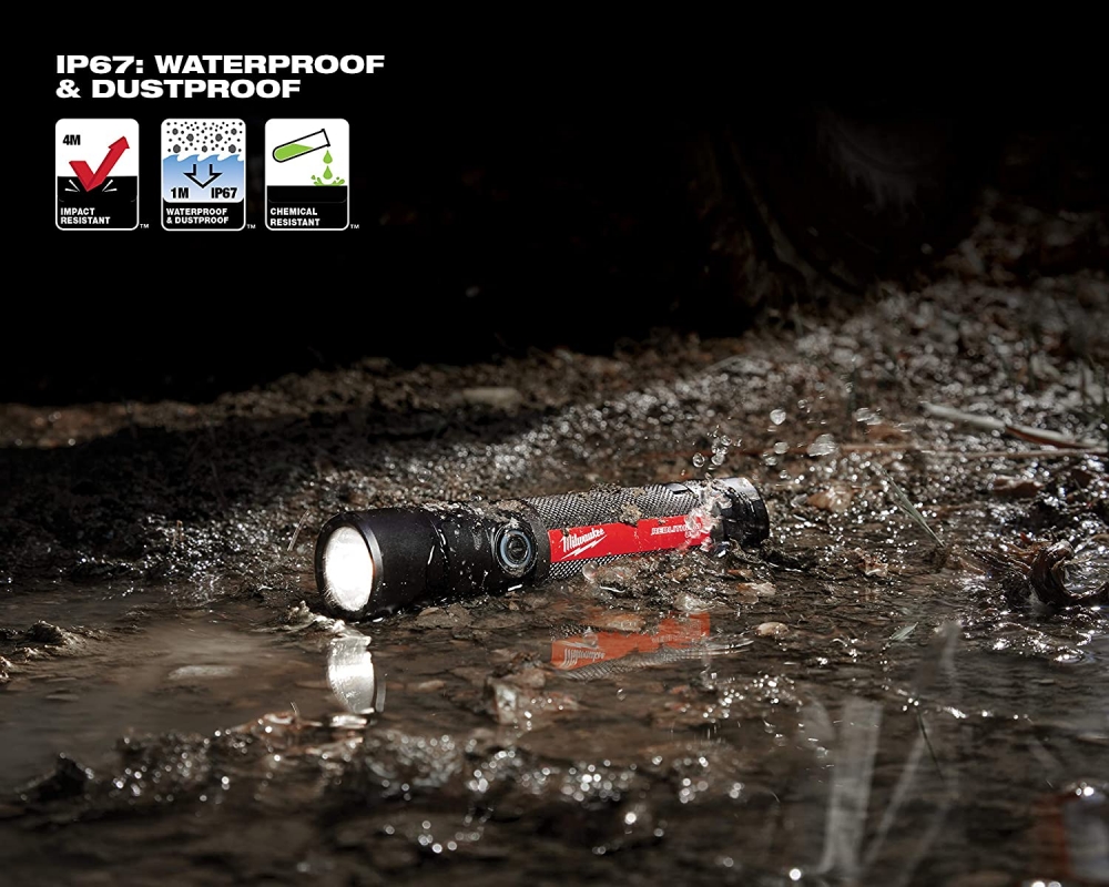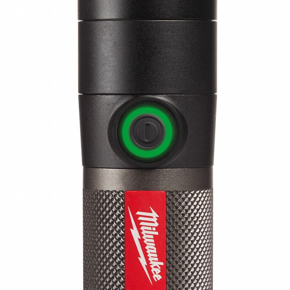 Nuestra linterna compacta de 800 L recargable mediante USB se puede guardar en el bolsillo sin comprometer la potencia. Aprovechando los avances en la tecnología LED, esta linterna mantiene un cuerpo que se puede guardar en el bolsillo, mientras que ofrece 800 L de salida TRUEVIEW™ de alta definición que le permite ver hasta 150 metros (492 pies). El haz de diana combina la precisión y la intensidad de la iluminación focalizada con la amplia cobertura de la iluminación de reflector, lo que le da la capacidad de buscar, rastrear o inspeccionar mejor. Esta linterna compacta con gancho desmontable está diseñada para un transporte y almacenamiento fácil, lo que la hace la solución ideal para mantenerla en sus bolsillos y bolsos de herramienta. El botón de encendido multifuncional ofrece indicación de batería, selección de modo e inteligencia de memoria de modos, la que enciende la linterna en el último modo usado. Maximice el brillo o extienda el tiempo de operación con las opciones de modo alto y bajo con hasta 11 horas de tiempo de operación. Esta linterna está construida para las condiciones más difíciles dentro y fuera del lugar de trabajo, cuenta con clasificación para caídas de 4 M y con clasificación IP67 y es completamente resistente al agua y al polvo para resistir la inmersión hasta 1 M. La linterna de 800 L recargable mediante USB funciona con la batería USB REDLITHIUM™ 3.0 AH, la que proporciona operación durante todo el día, más recargas y un tiempo de carga 3 veces más rápido. La batería USB REDLITHIUM™ de MILWAUKEE® se puede recargar en la linterna mediante un Micro-USB o se puede cambiar por baterías USB REDLITHIUM™ adicionales para tener prácticamente cero tiempo de inactividad. La linterna de enfoque giratorio de 800 L cuenta con una garantía limitada de por vida.