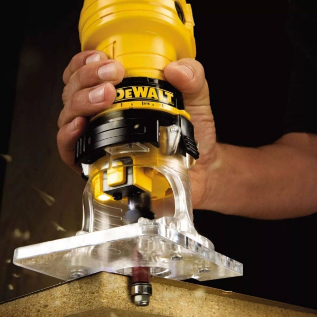 Aro de graduación de profundidad micro y macro con ajuste rápido, traba de eje y de fácil acceso. Collet extendido para mayor contacto con el material y traba de seguridad para ajustes rápidos de la base
