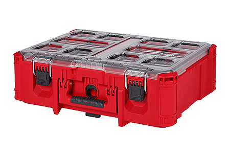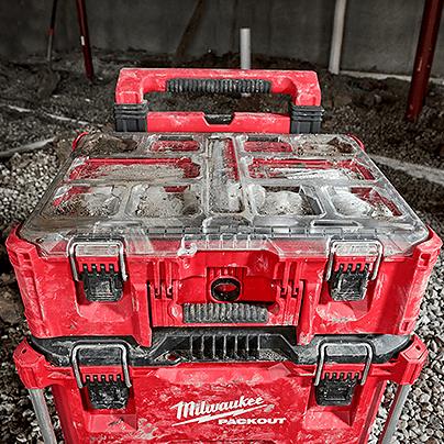 Nuestro organizador profundo PACKOUT™ tiene una capacidad de 50 lb de peso y una construcción de polímero resistente a los impactos para soportar condiciones difíciles en el lugar de trabajo. Un sello impermeable con clasificación IP65 protege las herramientas, accesorios y piezas pequeñas de la lluvia y otros residuos del lugar de trabajo. El interior del organizador cuenta con divisores de ajuste rápido y un diseño profundo para contener conectores grandes y piezas pequeñas. La tapa transparente del organizador sella los compartimientos para evitar que los contenidos se desplacen durante el transporte. El sistema de almacenamiento modular PACKOUT™ de MILWAUKEE® le permite personalizar un sistema de almacenamiento para mantener sus herramientas y accesorios organizados y es fácil de transportar.
