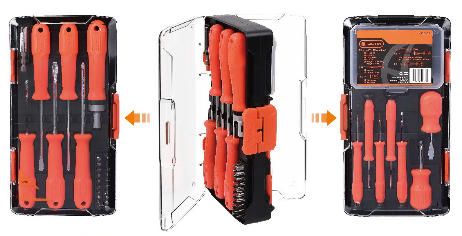 JUEGO DE DESTORNILLADORES Y PUNTAS 34 PIEZAS TACTIX