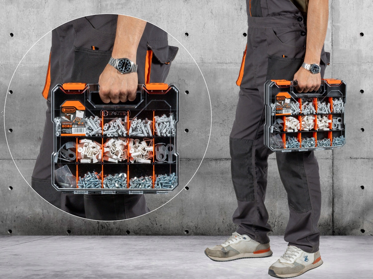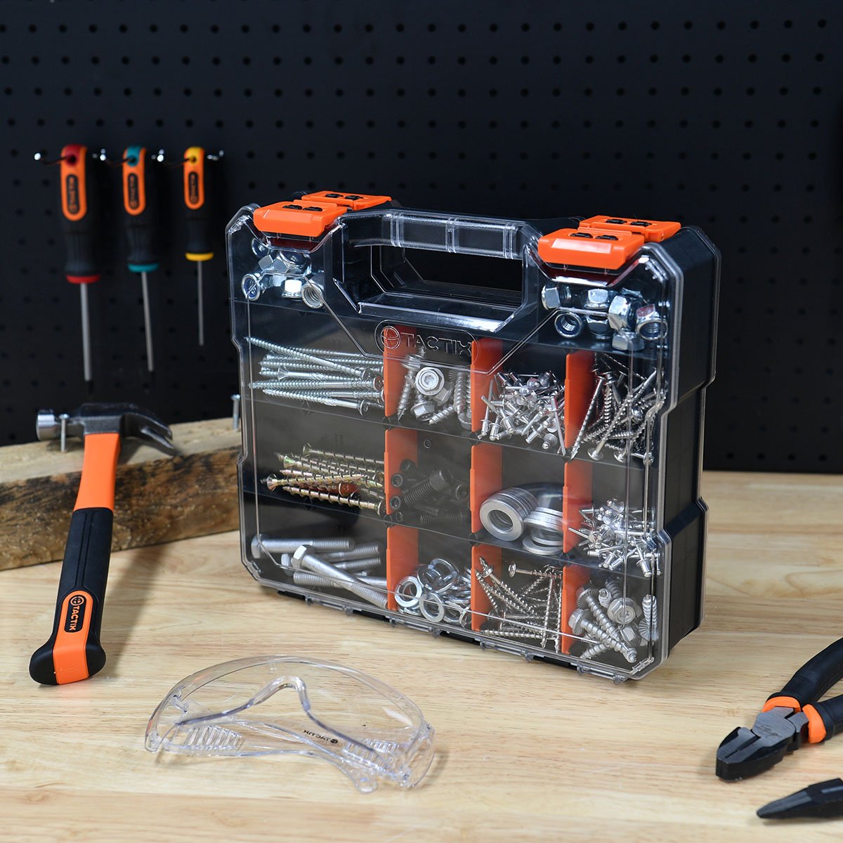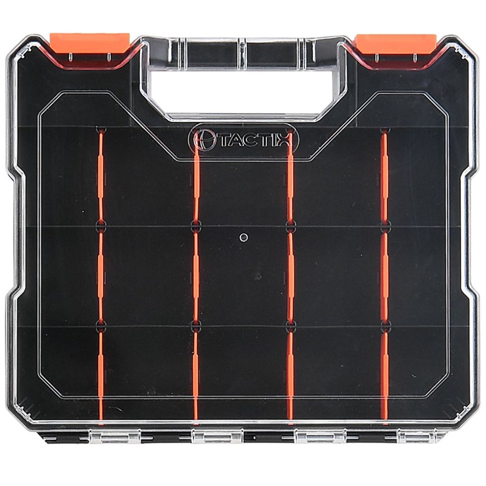 CAJA ORGANIZACION 2 LADOS 31.5CM (12.25IN.) Tactix, esta caja es de fcil almacenaje y cuenta con las herramientas bsicas para reparar proyectos diversos en su hogar.