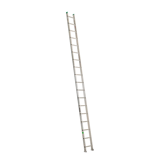 Escalera recta de aluminio con peldaño en “D” de 12 pies de altura y capacidad de carga 175 Kg. Tipo II.